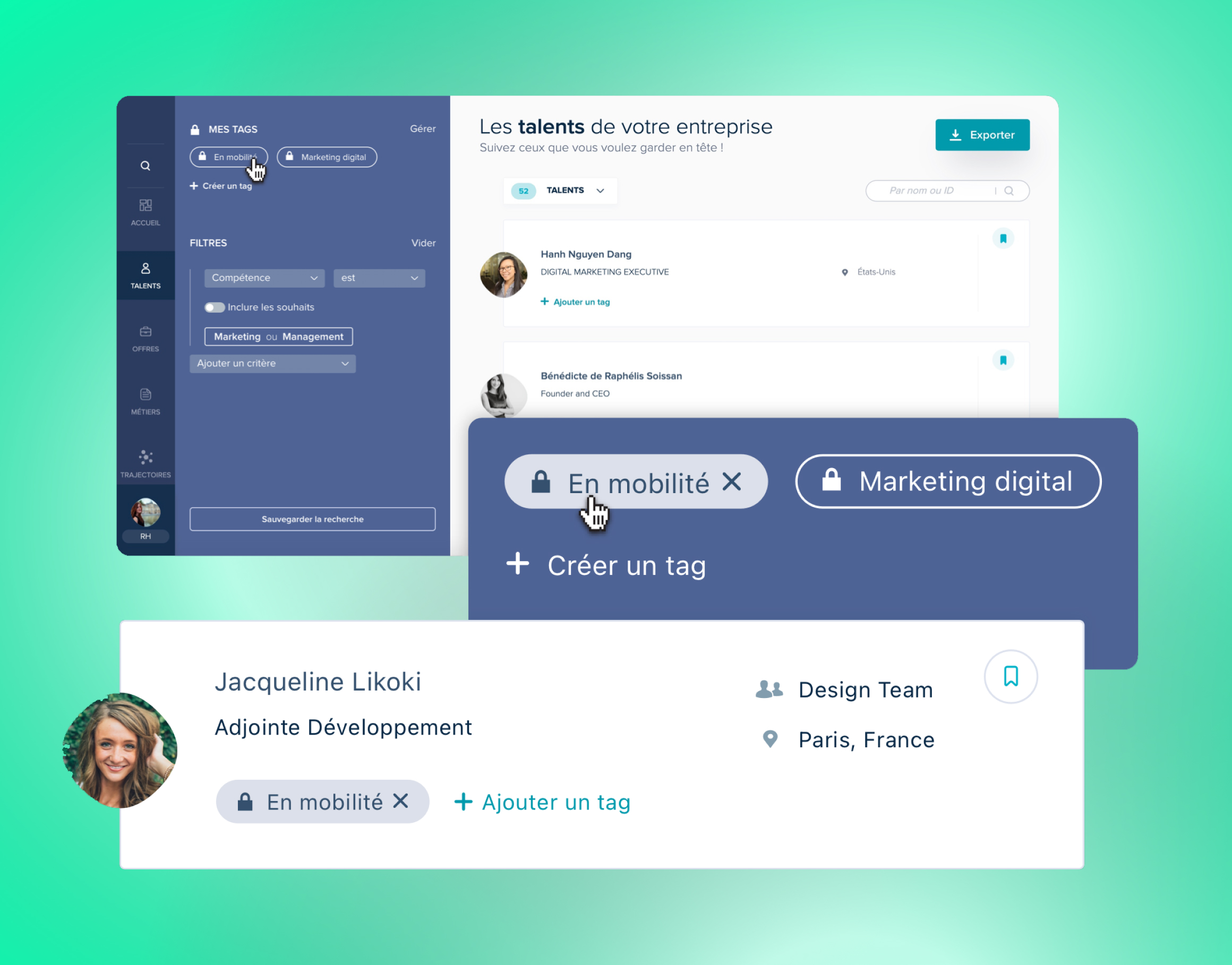 L'utilisateur peut aussi créer et gérer un système de tags afin de créer des viviers personnalisés et accélérer ses recherches sur de plus longues périodes en gagnant du temps :