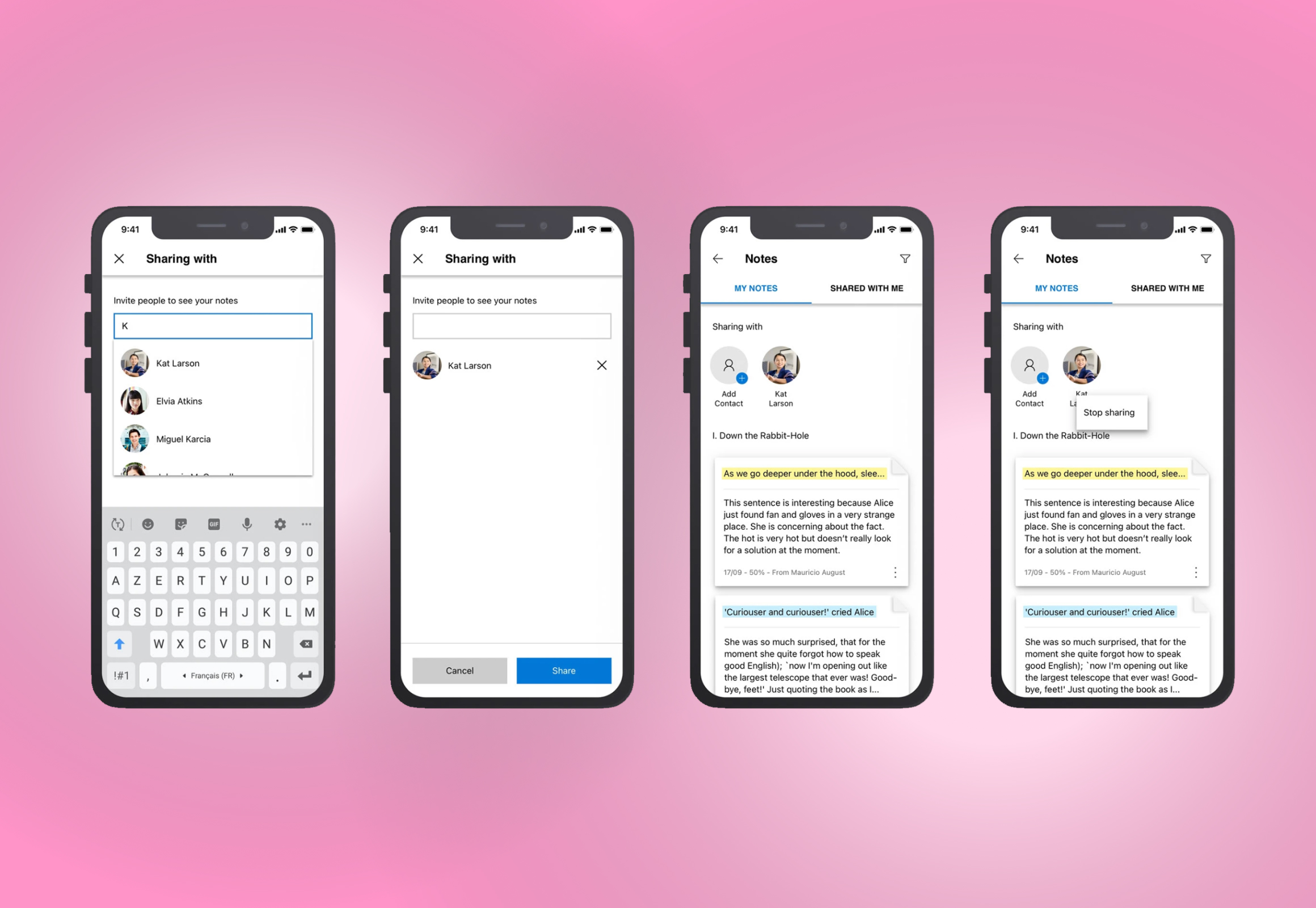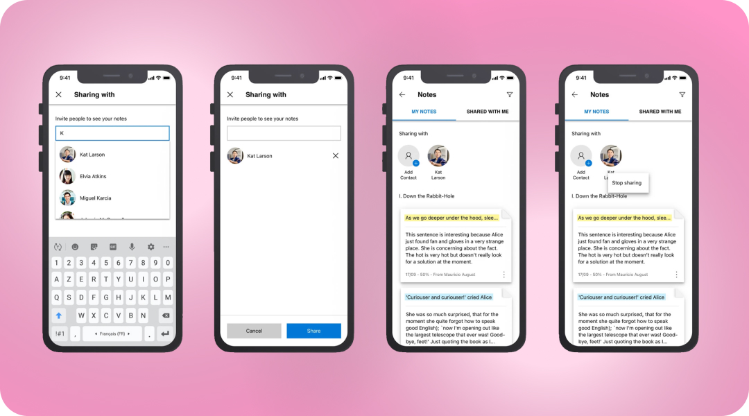 - distinguer leurs propres notes de celles partagées avec eux par les autres utilisateurs, via un panel séparé en deux